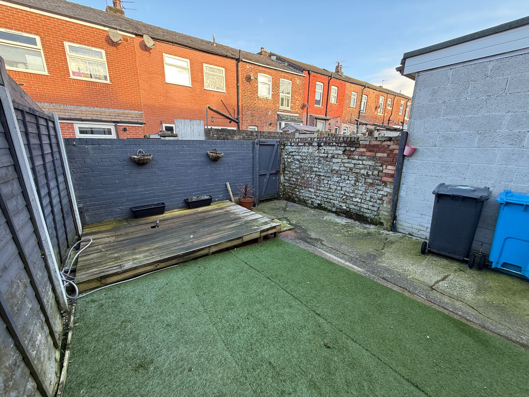 To the rear of the property is a yard with artificial grass, decking area and rear access.
