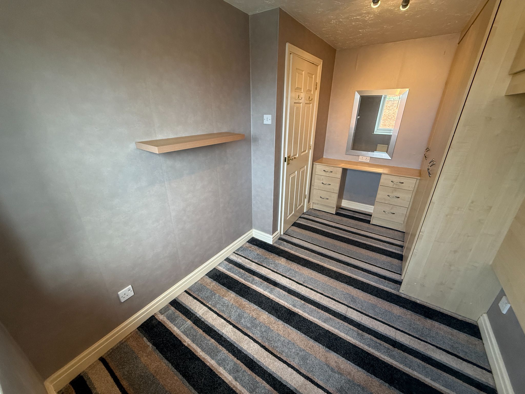 The second bedroom is to the rear and is a single room which also features fitted wardrobe space, carpet and radiator under the window.