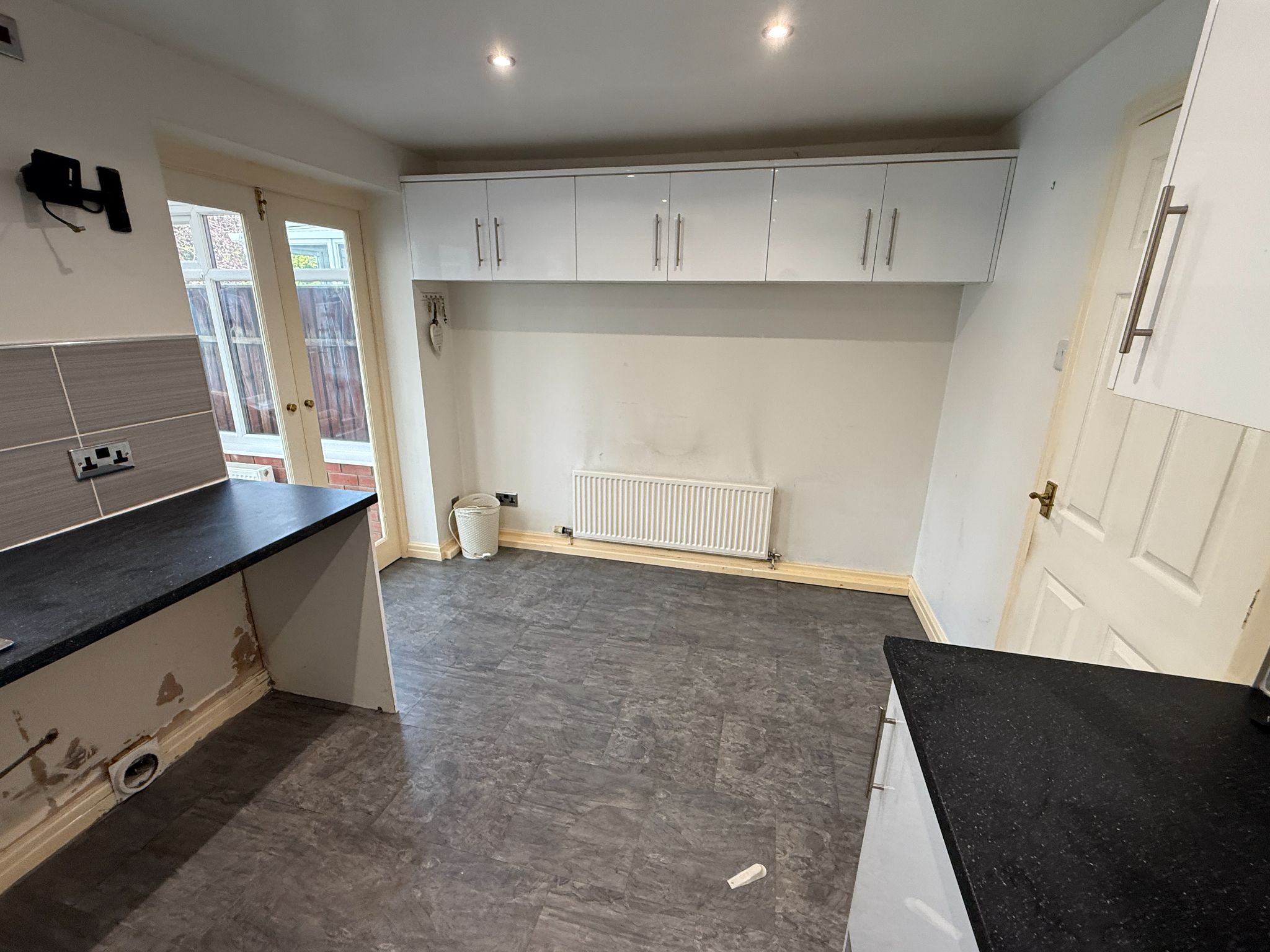To the front of the property is a good sized lounge, which features a gas fireplace and surround, radiator underneath a bright and airy window and carpeted flooring. The lounge provides access to upstairs and to the kitchen.