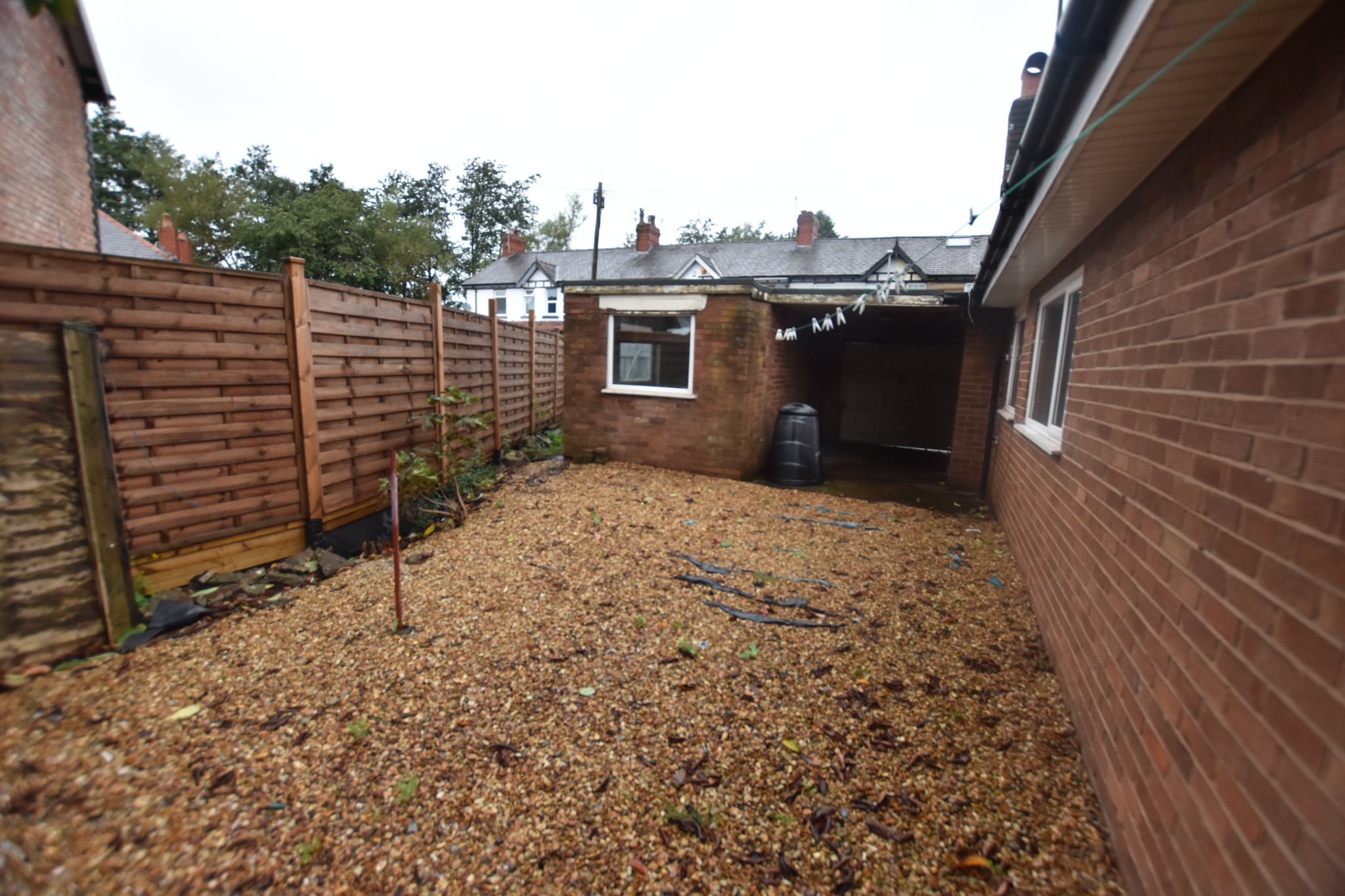 To the front is an area for off road parking. There is one external garage, plus a second garage door to covered car port area. There is a large south facing rear garden, with lawn and stoned areas.