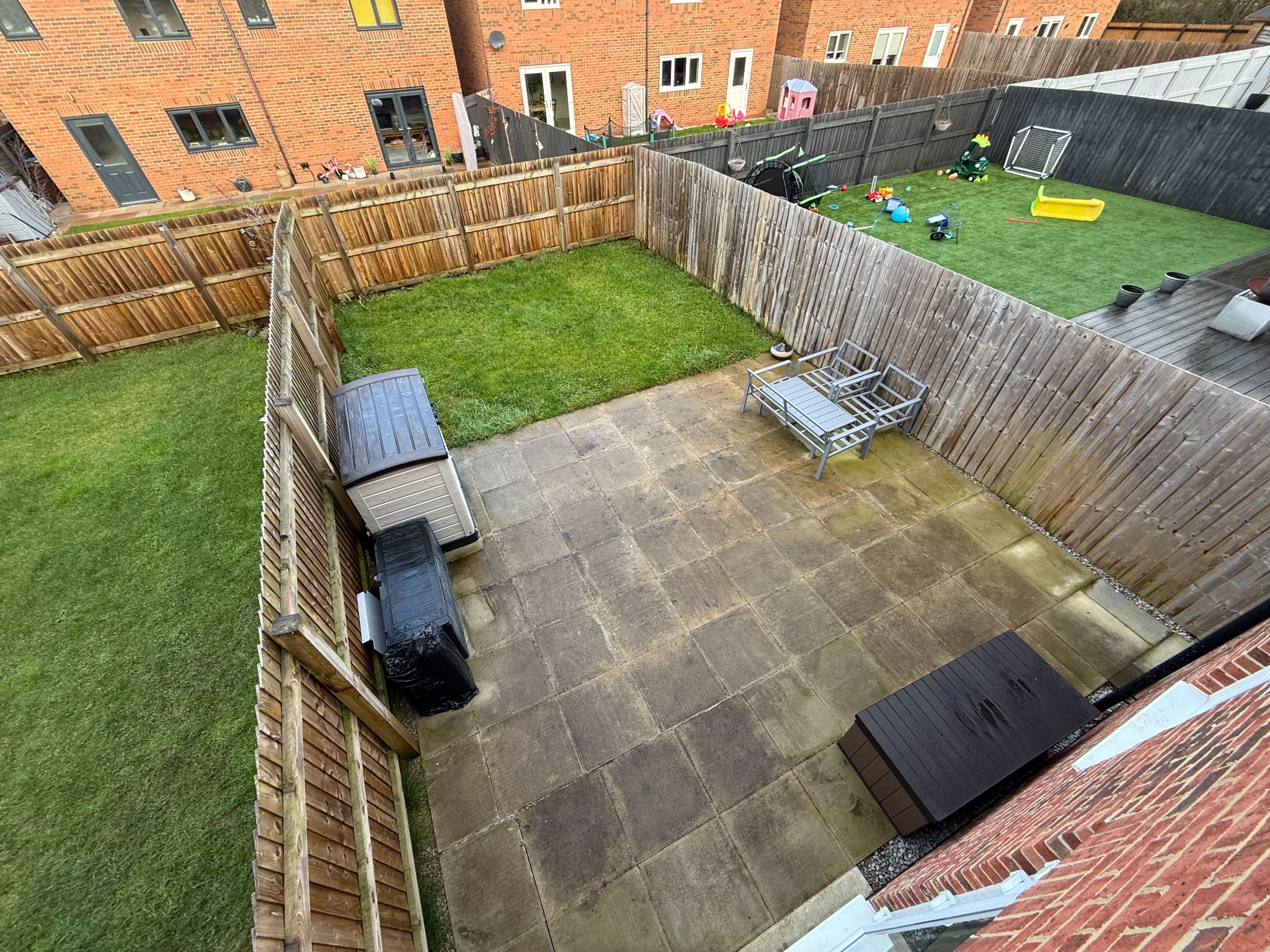 To the front of the property is a large drivway for parking two vehicles. To the rear is an enclosed garden with large patio area and lawn. There is access through french doors in the lougne and a side gate.