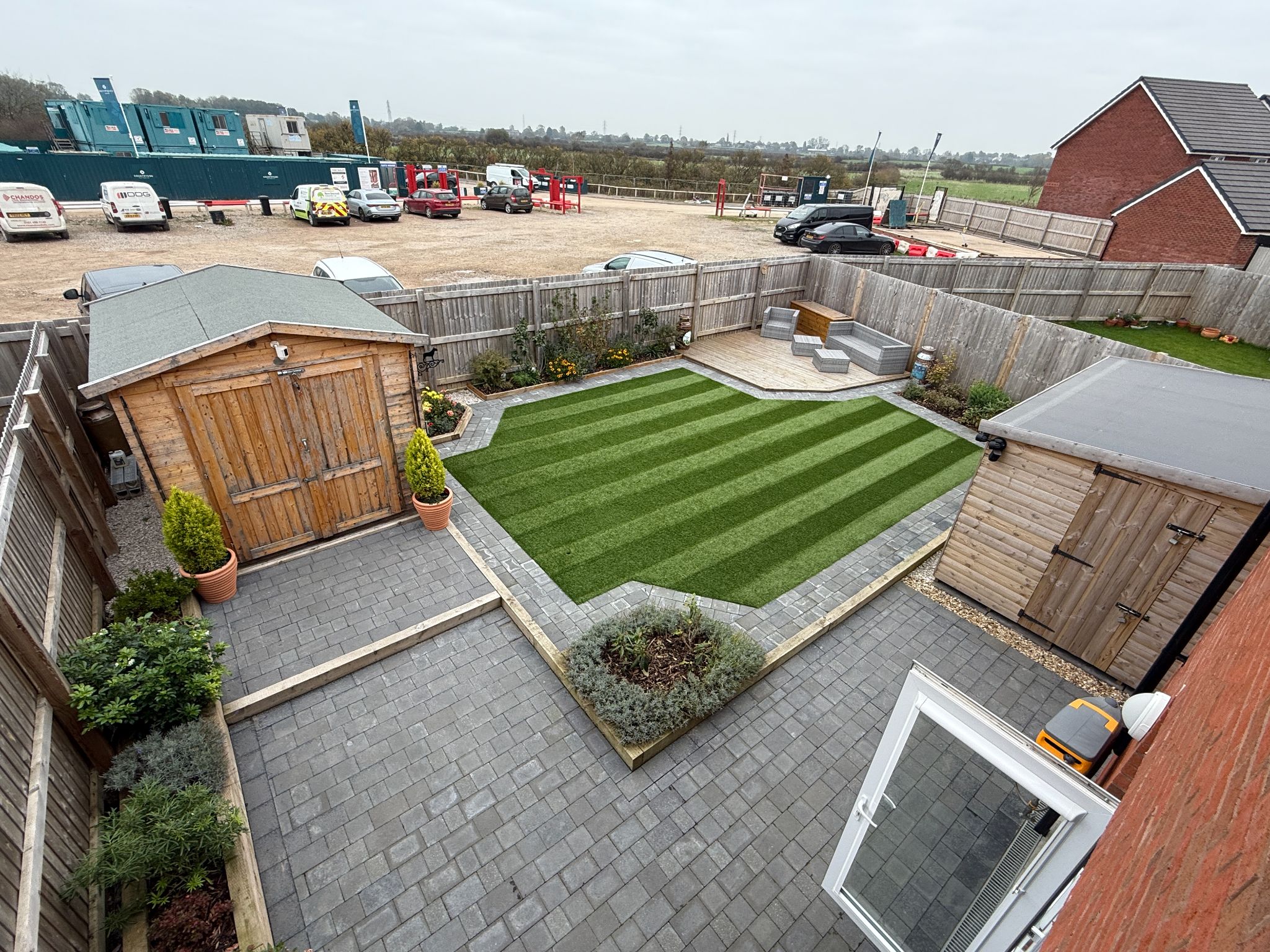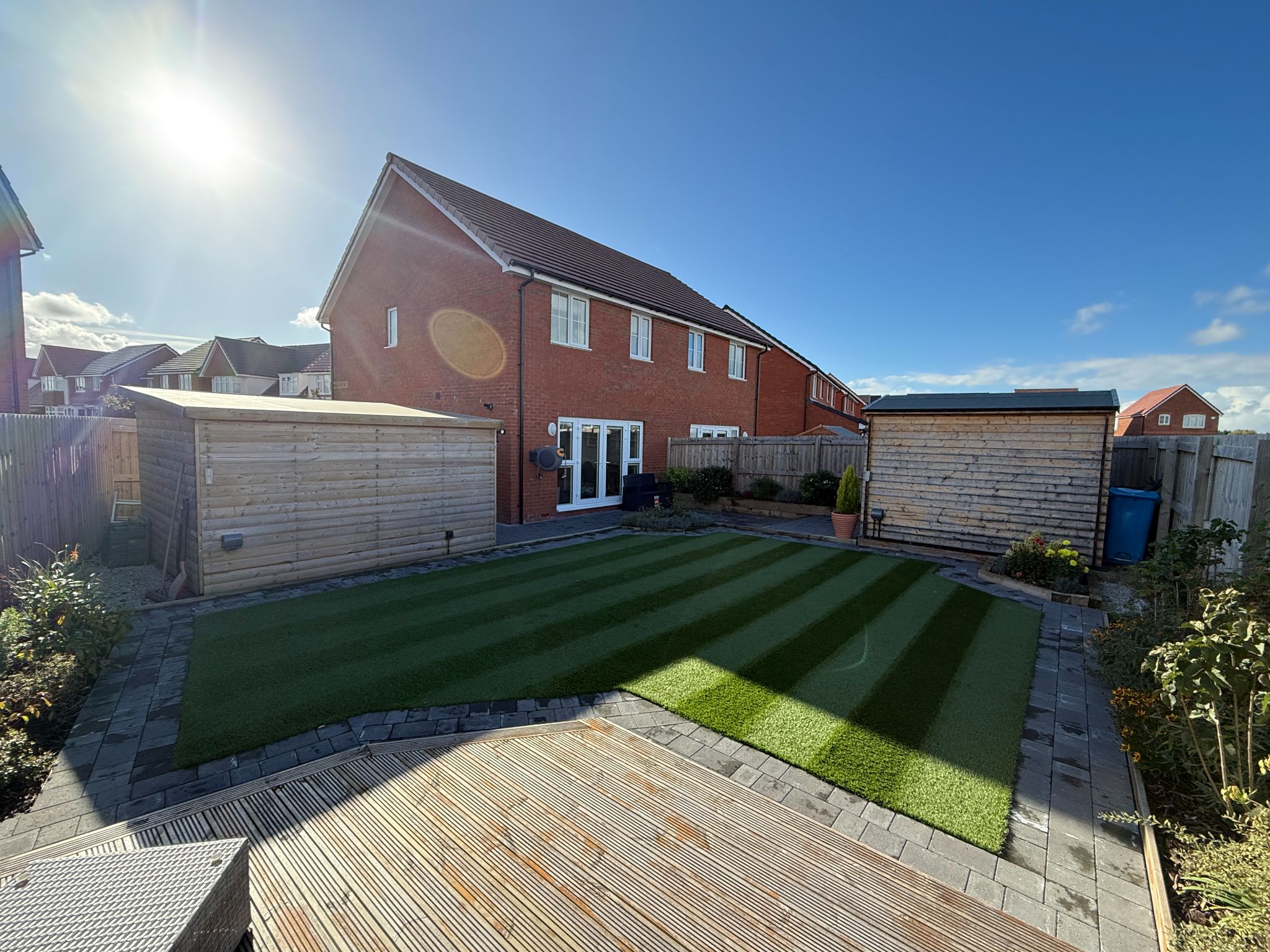 To the front of the property is a path leading to the front door, a small front garden and a driveway to the side of the property. At the end of a drive is wooden gate leading to the stunningly landscaped rear garden, which is one of the largest on the development. The rear garden includes paving, lawn and decking areas as well as two wooden sheds with power supply.
